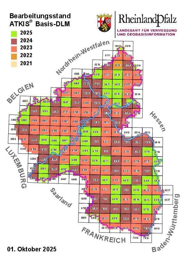 Blattübersicht der DTK25 - Aktualitätsstände analoge und digitale Ausgaben